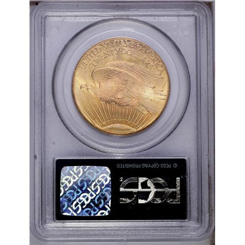 <B>1927<$20> MS65 PCGS.</B></I> Subtle light green and pale pink undertones are visible within the rich layer of peach-gold patination. The lustrous surfaces are minimally abraded, and exhibit well struck design elements. On small group of abrasions is noted in the right obverse field at 3 o'clock. Housed in an early PCGS holder. <BR><BR><B>Important notice:</B> Heritage usually auctions material at the rate of 200-250 lots per hour. On some occasions eBay Live bid software or the Internet may not be able to keep up with the pace of the auction. We recommend placing a realistic absentee bid now as insurance to avoid disappointment. Occasionally the auctioneer may eliminate or reject an eBay Live bid, and the auctioneer may also reopen a lot after the close of the eBay live bidding (usually because we missed an audience bid), and may reject your bid even if it shows you as the winning bidder. By bidding via eBay Live, you agree that Heritage may award the lot to another bidder at its sole discretion under the circumstances described above or any other reasonable circumstances. Since eBay bids are not shown to us until we open the lot on the floor, we treat those bids just like floor bids. In most cases the floor responds before the eBay bid is presented to us, due to Internet lag time, so for consistency we have made it a policy that floor bids are always considered first over tie eBay live bids. Also please note that all Heritage lots purchased through eBay Live carry a 20% Buyer's Premium. Please make sure you read the Terms and Conditions before you bid. This lot is being auctioned in conjunction with a live floor auction by Heritage Galleries & Auctioneers. All final auction and invoice information will be supplied by Heritage Galleries & Auctioneers, and all other information should be considered preliminary. Lot:4740 <BR><BR><B>Winning Notification and Billing:</B> After the FINAL session in this auction is complete, Heritage will send e-mail and snail mail invoices. This process normally takes several days. All final auction and invoice information will be supplied by Heritage Galleries & Auctioneers, and all other information should be considered preliminary. <BR><BR>This auction will be conducted on a live auction floor and over the Internet through eBay Live. If you choose to place an absentee bid, please take a moment to <font color='#0000ff'><u><a href='http://pages.ebay.com/liveauctions/help/before/laabsentee.html'>learn how eBay Live absentee bidding works</a></u></font><font color='#000000'>