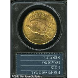 <B>1927 $20 MS65 PCGS.</B></I> The Capitol building is well struck, and the fully lustrous surfaces are not disturbed by bagmarks. Interesting mint-made clash marks (as struck) are noted beneath the eagle. Lot:9743