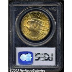 1927 $20 MS65 PCGS. Lustrous and well defined with a touch of iridescent orange patina. A perfect choice for a type coin. Important notice: Heritage usually auctions material at the rate of 200-250 lots per hour. On some occasions eBay Live bid software or the Internet may not be able to keep up with the pace of the auction. We recommend placing a realistic absentee bid now as insurance to avoid disappointment. Occasionally the auctioneer may eliminate or reject an eBay Live bid, and the auctioneer may also reopen a lot after the close of the eBay live bidding (usually because we missed an audience bid), and may reject your bid even if it shows you as the winning bidder. By bidding via eBay Live, you agree that Heritage may award the lot to another bidder at its sole discretion under the circumstances described above or any other reasonable circumstances. Also please note that all Heritage lots purchased through eBay Live carry a 20% Buyer's Premium. Please make sure you read the Terms and Conditions before you bid.