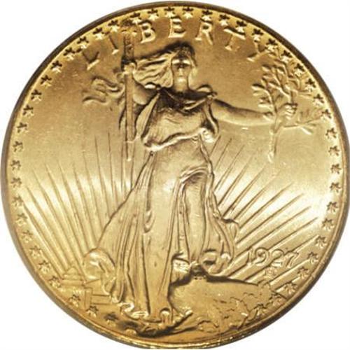 <B>1927 $20 MS65 PCGS.</B></I> Blazing luster exudes from apricot-gold surfaces that have a faint greenish cast. The design elements are well impressed, including the fingers on Liberty's hand holding the branch, and on the eagle's plumage. Well preserved throughout. One of the most available issues of the series.<BR><BR><B>Coin Engraver:</B> Augustus Saint-Gaudens<BR><BR><b>Shipping:</b> Coins & Currency (<a target="_blank" href="http://www.heritageauctions.com/common/shipping.php">view shipping information</a>)