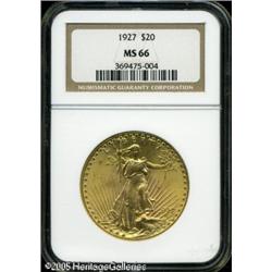 <B>1927 $20 MS66 NGC.</B></I> A lustrous Gem that has bright yellow-gold fields on each side. Nearly pristine except for a few minor contact marks that are well concealed within the devices and a couple of minor ticks on the rim near the eagle's head. Lot:9745