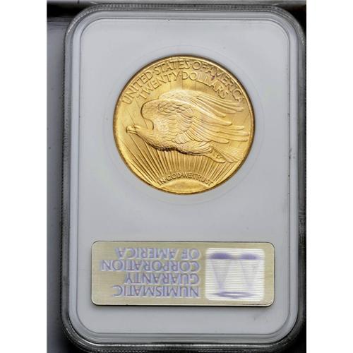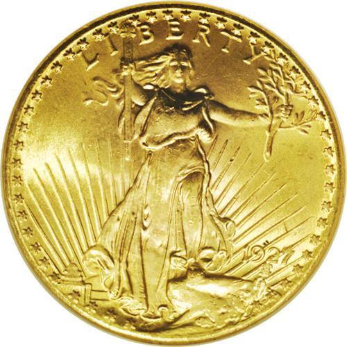 <B>1927<$20> MS66 NGC.</B></I> Fantastic luster emanates from the satiny, yellow-gold surfaces of this Saint-Gaudens Double Eagle. The design elements are well struck throughout, further enhancing the eye appeal of this gorgeous specimen. A single alloy spot is noted under the left side of the M of AMERICA.