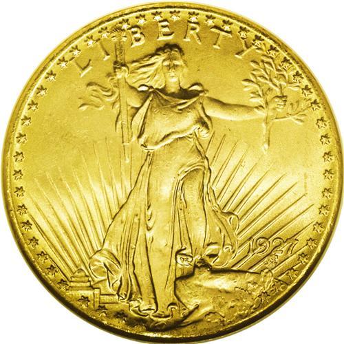 <B>1927<$20> MS66 NGC.</B></I> Solidly struck with frosty peach-gold surfaces. For whatever reason, Philadelphia Mint double eagles struck between 1922 and 1928 have a much higher survival rate than their corresponding branch mint issues, with the exception of the common 1923-D. An attractive piece that is clearly a step up from the usual Gem; in fact, NGC has certified just 27 pieces finer (9/06).