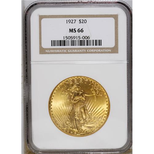 1927 $20 MS66 NGC. The strong luster and rich yellow-o