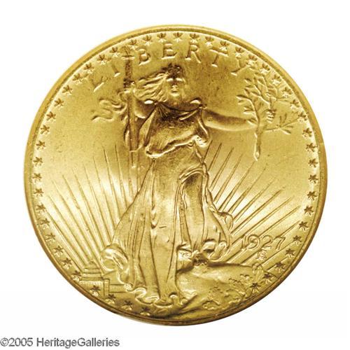 <B>1927<$20> MS66 NGC.</B></I> This lovely premium Gem displays the rich mint frost and adequately impressed features that typify this P-mint issue.