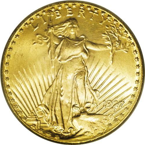 1927 $20 MS66 PCGS. Pink-gold color, shimmering luster 1927[$20] MS66 PCGS.
