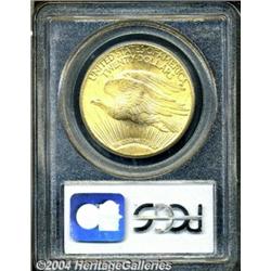 <B>1927<$20> MS66 PCGS.</B></I> Fantastic luster emanates from the satiny, apricot-gold surfaces of this Saint-Gaudens double eagle. The design elements are well struck throughout, further enhancing the eye appeal of this gorgeous specimen. A few, trivial abrasions on the rays in the lower right reverse do not distract. <BR><BR><B>Important notice:</B> Heritage usually auctions material at the rate of 200-250 lots per hour. On some occasions eBay Live bid software or the Internet may not be able to keep up with the pace of the auction. We recommend placing a realistic absentee bid now as insurance to avoid disappointment. Occasionally the auctioneer may eliminate or reject an eBay Live bid, and the auctioneer may also reopen a lot after the close of the eBay live bidding (usually because we missed an audience bid), and may reject your bid even if it shows you as the winning bidder. By bidding via eBay Live, you agree that Heritage may award the lot to another bidder at its sole discretion under the circumstances described above or any other reasonable circumstances. Since eBay bids are not shown to us until we open the lot on the floor, we treat those bids just like floor bids. In most cases the floor responds before the eBay bid is presented to us, due to Internet lag time, so for consistency we have made it a policy that floor bids are always considered first over tie eBay live bids. Also please note that all Heritage lots purchased through eBay Live carry a 20% Buyer's Premium. Please make sure you read the Terms and Conditions before you bid. </span></font></tr></table></td></tr></table>