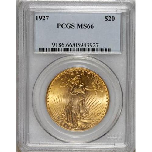 <B>1927 $20 MS66 PCGS.</B></I> A flashy Premium Gem that displays a blend of vibrant orange-gold and delicate wheat-gold colors on each side. Crisply struck with excellent surface quality, and an immensely appealing candidate for the type collector. PCGS has graded just 12 pieces finer (5/07).<BR><BR><b>Shipping:</b> Coins & Currency (<a target="_blank" href="http://www.heritageauctions.com/common/shipping.php">view shipping information</a>)