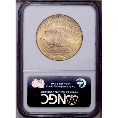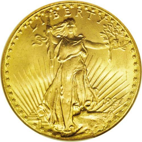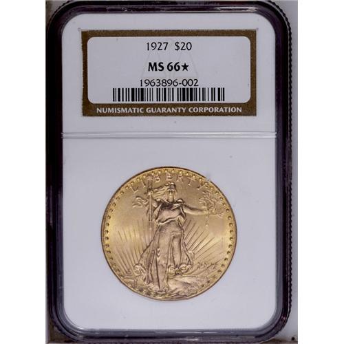 <B>1927<$20> MS66 <img border='0' src='http://www.heritagecoins.com/images/star.gif' width=10 height=10> NGC.</B></I> Rich peach color and captivating cartwheel luster affirm the eye appeal of this well struck premium Gem. The 1927 is among the more available dates of the Saint-Gaudens type, but examples without noticeable marks from their bag-stored peers are comparatively few in number. <BR><BR><B>Important notice:</B> Heritage usually auctions material at the rate of 200-250 lots per hour. On some occasions eBay Live bid software or the Internet may not be able to keep up with the pace of the auction. We recommend placing a realistic absentee bid now as insurance to avoid disappointment. Occasionally the auctioneer may eliminate or reject an eBay Live bid, and the auctioneer may also reopen a lot after the close of the eBay live bidding (usually because we missed an audience bid), and may reject your bid even if it shows you as the winning bidder. By bidding via eBay Live, you agree that Heritage may award the lot to another bidder at its sole discretion under the circumstances described above or any other reasonable circumstances. Since eBay bids are not shown to us until we open the lot on the floor, we treat those bids just like floor bids. In most cases the floor responds before the eBay bid is presented to us, due to Internet lag time, so for consistency we have made it a policy that floor bids are always considered first over tie eBay live bids. Also please note that all Heritage lots purchased through eBay Live carry a 20% Buyer's Premium. Please make sure you read the Terms and Conditions before you bid. This lot is being auctioned in conjunction with a live floor auction by Heritage Galleries & Auctioneers. All final auction and invoice information will be supplied by Heritage Galleries & Auctioneers, and all other information should be considered preliminary. Lot:4743 <BR><BR><B>Winning Notification and Billing:</B> After the FINAL session in this auction is complete, Heritage will send e-mail and snail mail invoices. This process normally takes several days. All final auction and invoice information will be supplied by Heritage Galleries & Auctioneers, and all other information should be considered preliminary. <BR><BR>This auction will be conducted on a live auction floor and over the Internet through eBay Live. If you choose to place an absentee bid, please take a moment to <font color='#0000ff'><u><a href='http://pages.ebay.com/liveauctions/help/before/laabsentee.html'>learn how eBay Live absentee bidding works</a></u></font><font color='#000000'>
