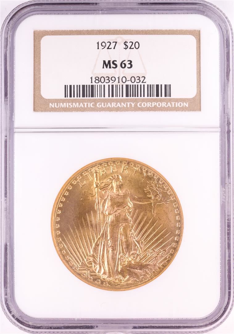 One 1927 $20 St. Gaudens Double Eagle Gold Coin NGC MS63. NGC Certified.