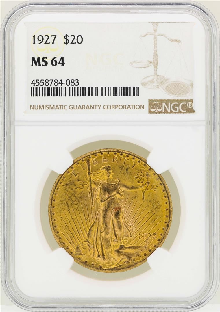 One 1927 $20 St. Gaudens Double Eagle Gold Coin NGC MS64. NGC Certified.