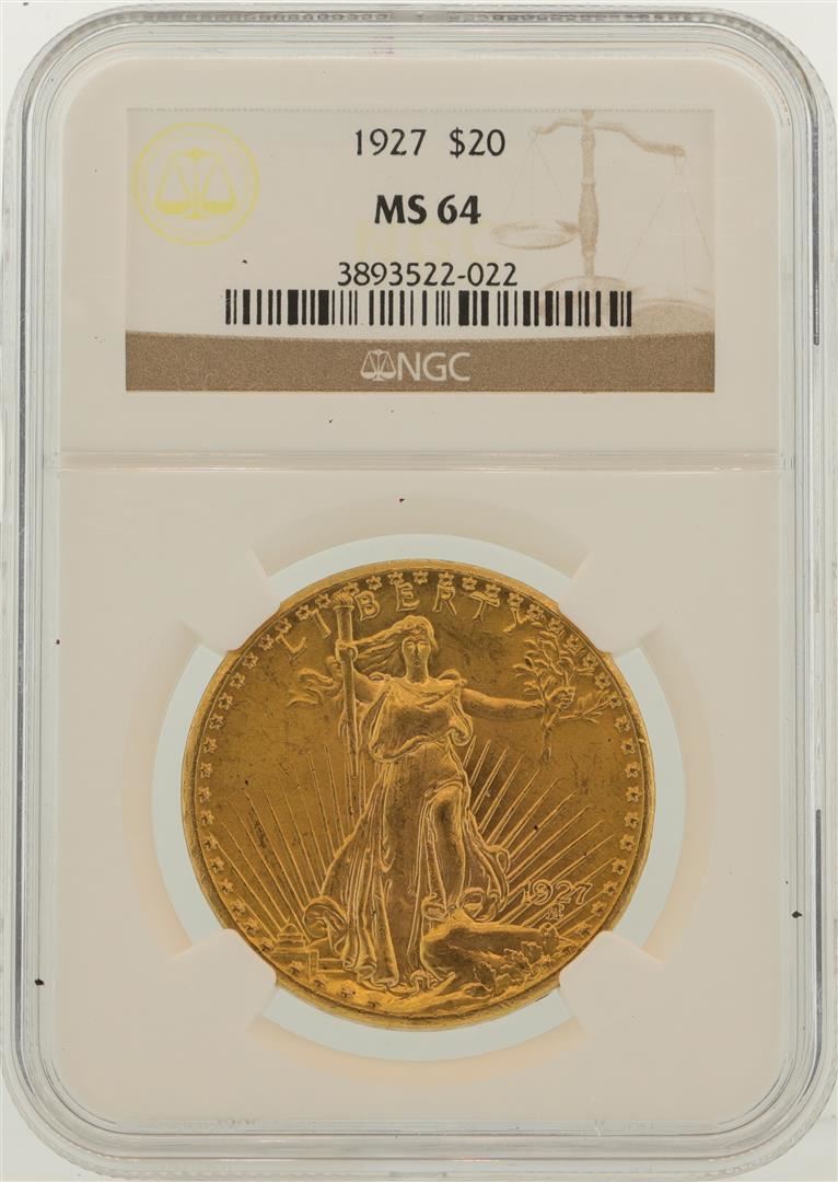 One 1927 $20 St. Gaudens Double Eagle Gold Coin. NGC certified.