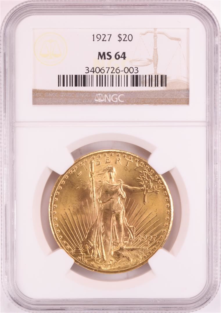 One 1927 $20 St. Gaudens Double Eagle Gold Coin NGC MS64. NGC Certified.