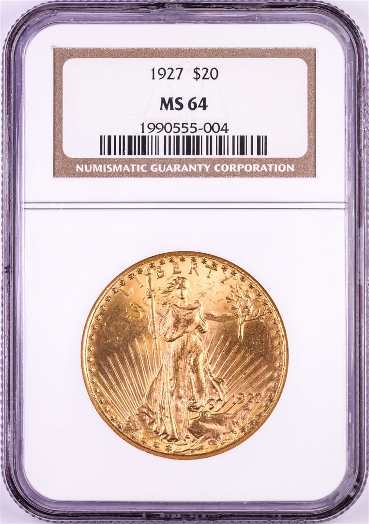 One 1927 $20 St. Gaudens Double Eagle Gold Coin NGC MS64. NGC Certified.