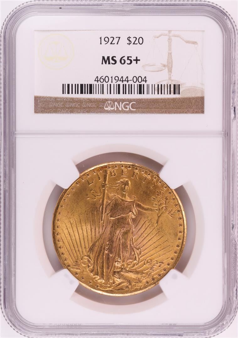 One 1927 $20 St. Gaudens Double Eagle Gold Coin NGC MS65+. NGC Certified.