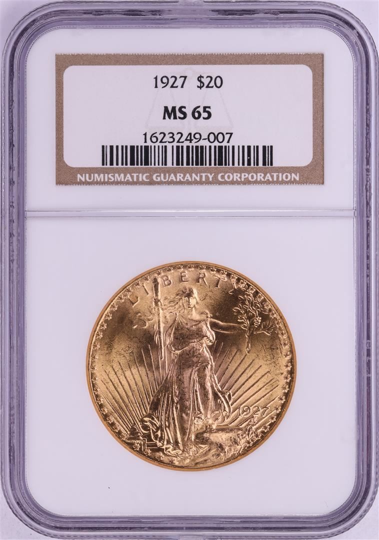 One 1927 $20 St. Gaudens Double Eagle Gold Coin NGC MS65. NGC Certified.
