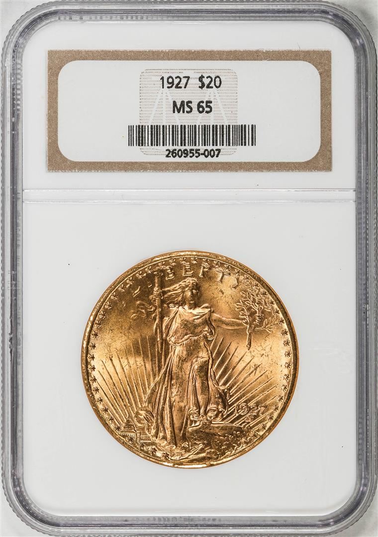 One 1927 $20 St. Gaudens Double Eagle Gold Coin NGC MS65. NGC Certified.