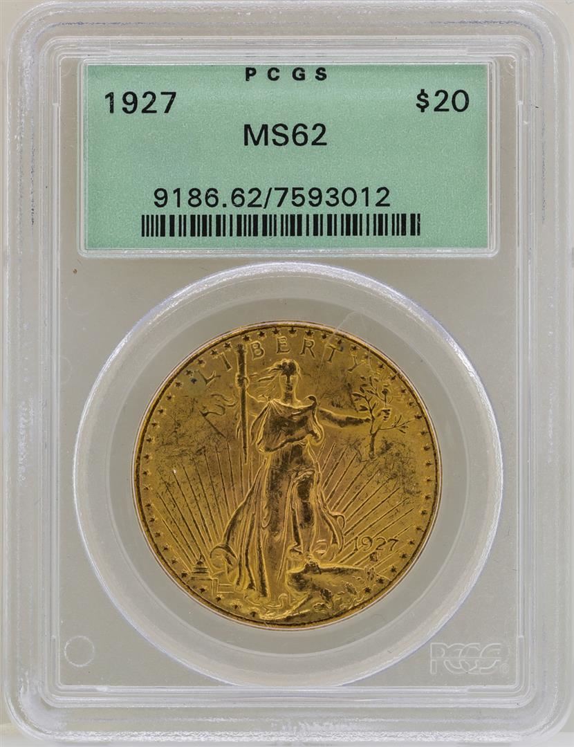 One 1927 $20 St. Gaudens Double Eagle Gold Coin PCGS MS62. PCGS Graded.