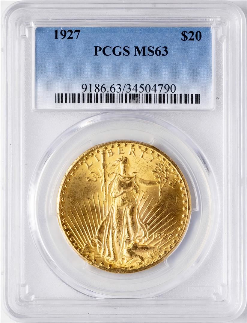 One 1927 $20 St. Gaudens Double Eagle Gold Coin PCGS MS63. PCGS Graded.