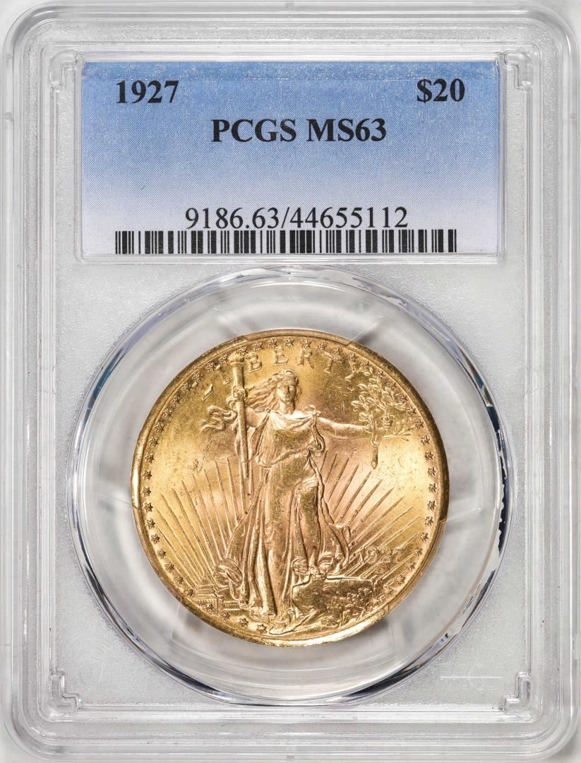 One 1927 $20 St. Gaudens Double Eagle Gold Coin PCGS MS63. PCGS Graded.