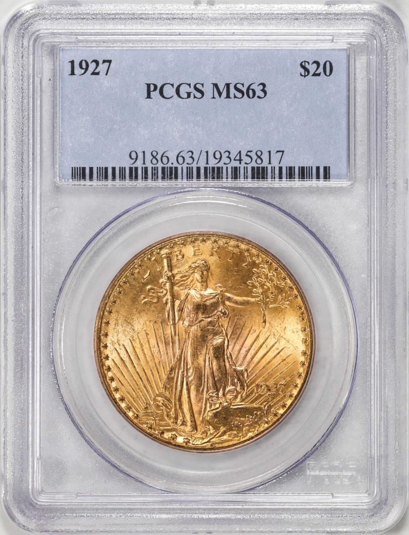 One 1927 $20 St. Gaudens Double Eagle Gold Coin PCGS MS63. PCGS Graded.