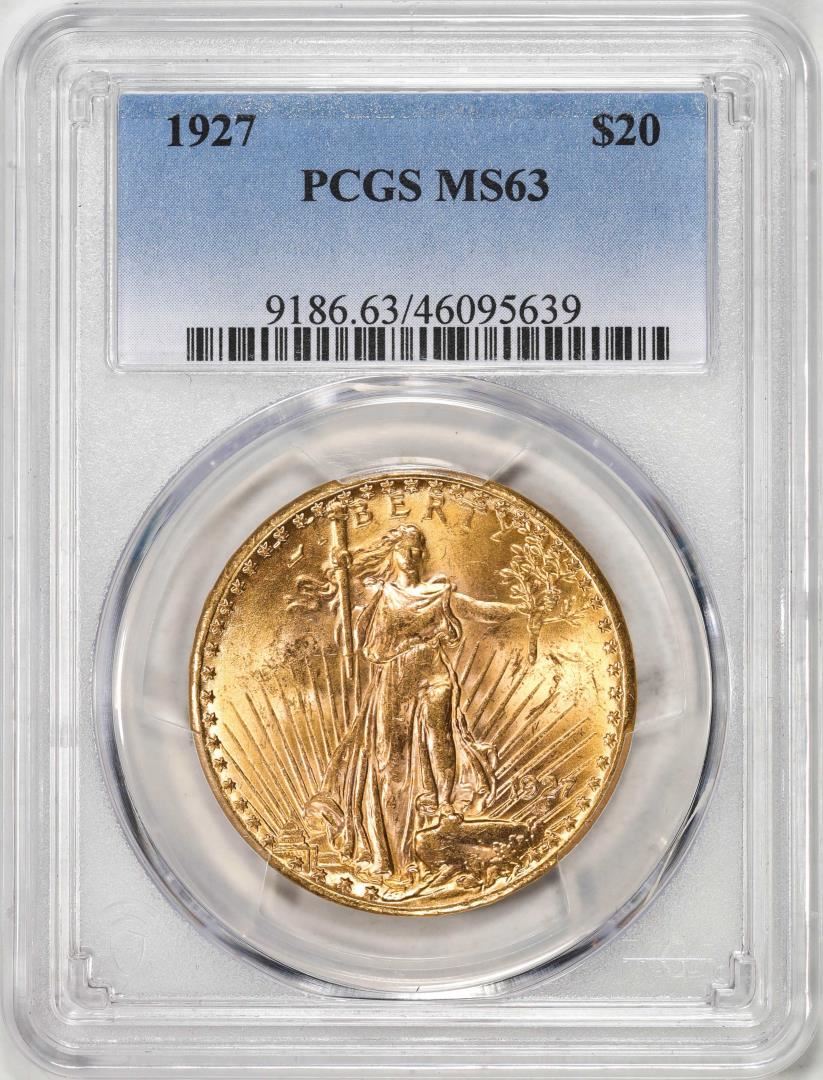 One 1927 $20 St. Gaudens Double Eagle Gold Coin PCGS MS63. PCGS Graded.
