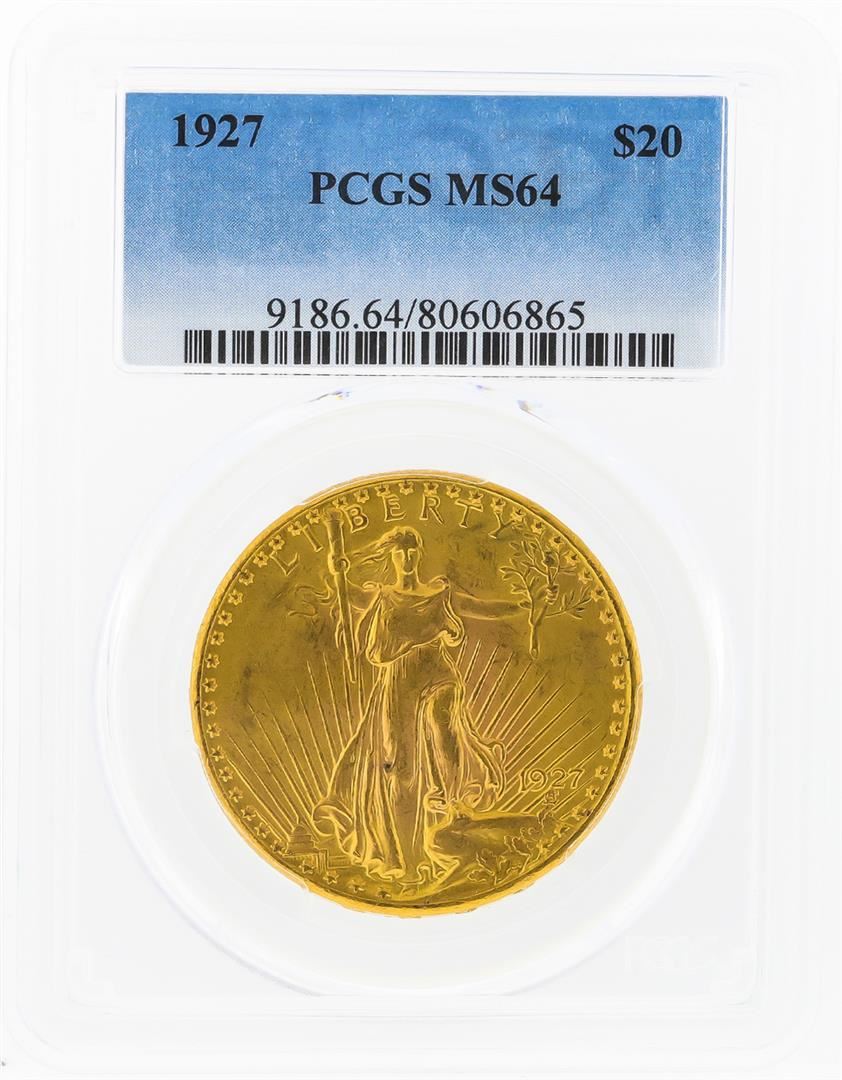One 1927 $20 St. Gaudens Double Eagle Gold Coin PCGS MS64. PCGS Graded.