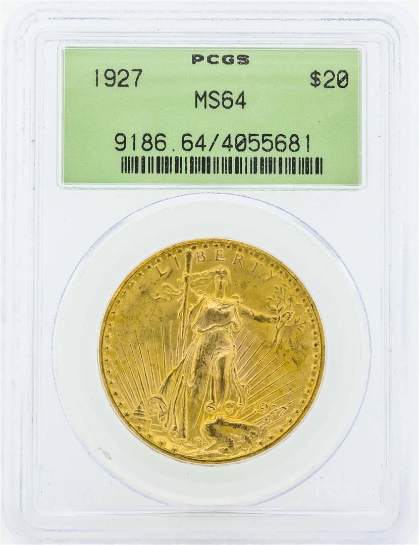 One 1927 $20 St. Gaudens Double Eagle Gold Coin PCGS MS64. PCGS Graded.