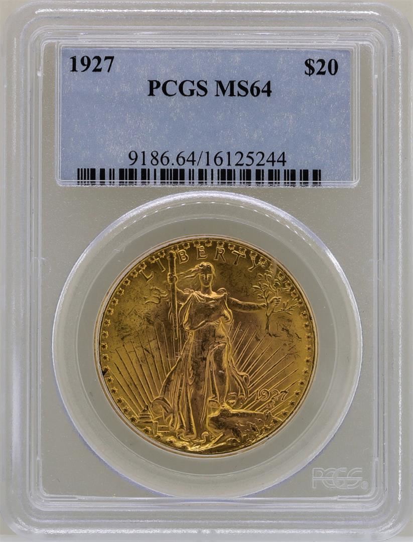 One 1927 $20 St. Gaudens Double Eagle Gold Coin PCGS MS64. PCGS Graded.