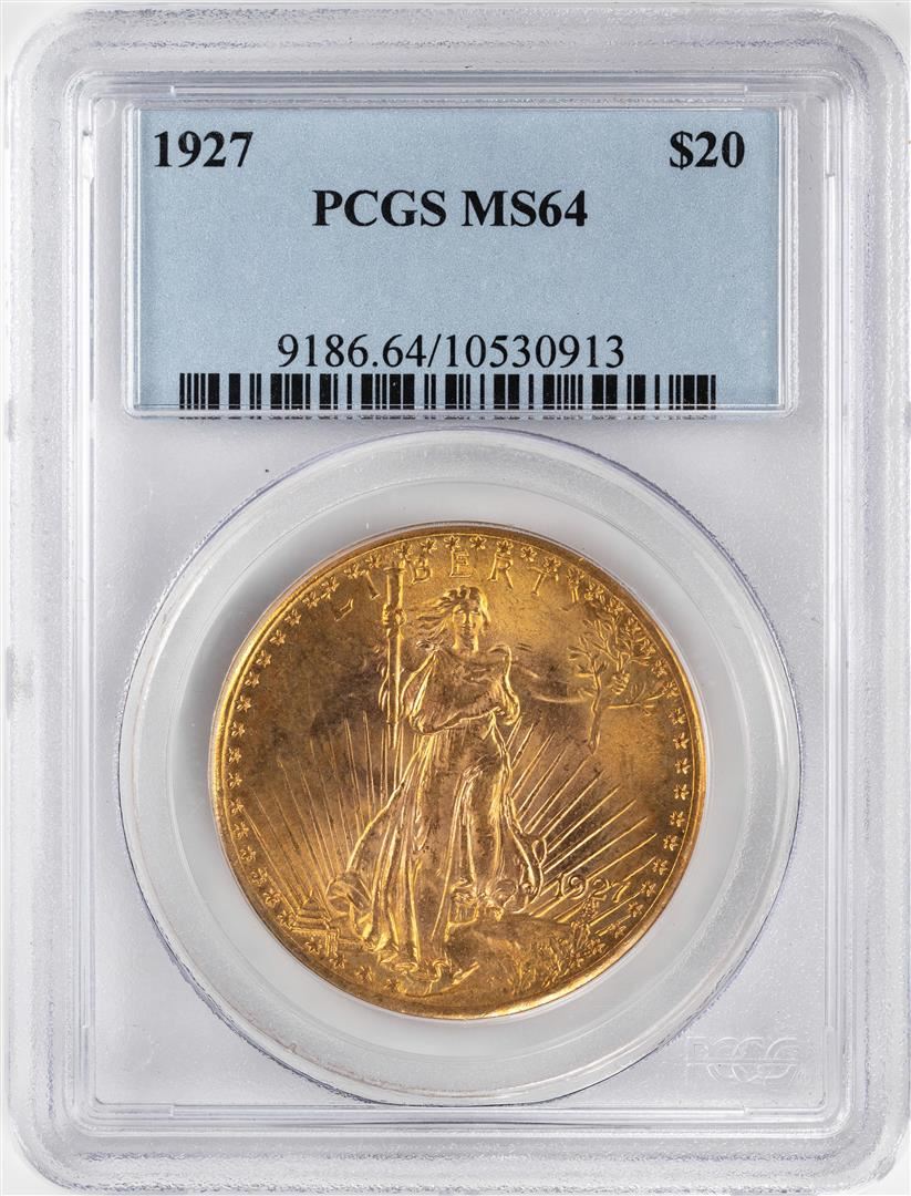 One 1927 $20 St. Gaudens Double Eagle Gold Coin PCGS MS64. PCGS Graded.