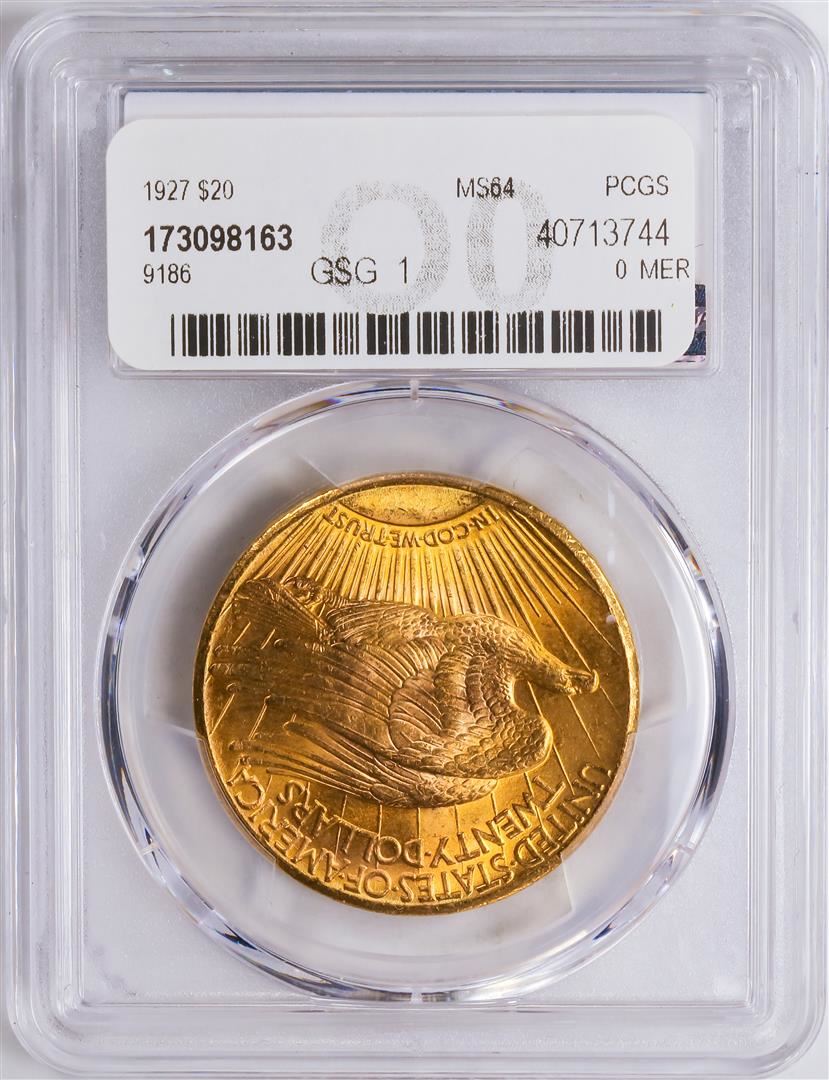 One 1927 $20 St. Gaudens Double Eagle Gold Coin PCGS MS64.