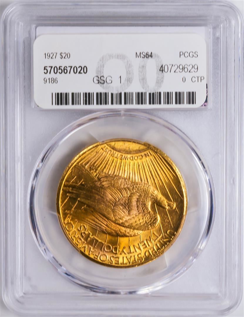 One 1927 $20 St. Gaudens Double Eagle Gold Coin PCGS MS64.