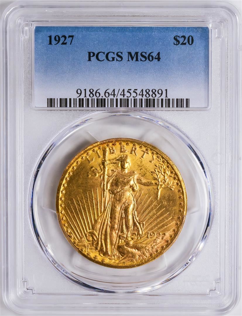 One 1927 $20 St. Gaudens Double Eagle Gold Coin PCGS MS64.