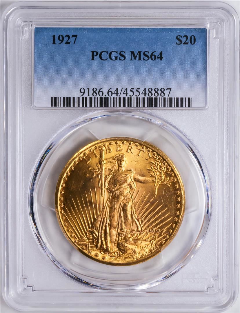One 1927 $20 St. Gaudens Double Eagle Gold Coin PCGS MS64.