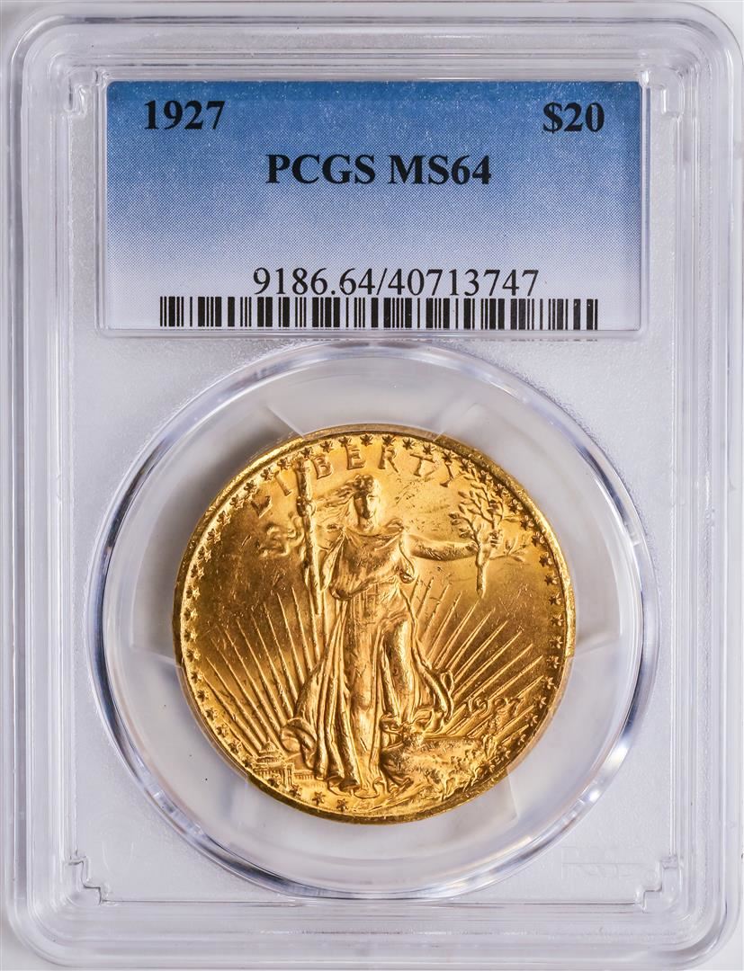 One 1927 $20 St. Gaudens Double Eagle Gold Coin PCGS MS64.