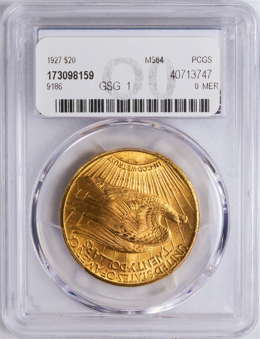 One 1927 $20 St. Gaudens Double Eagle Gold Coin PCGS MS64.