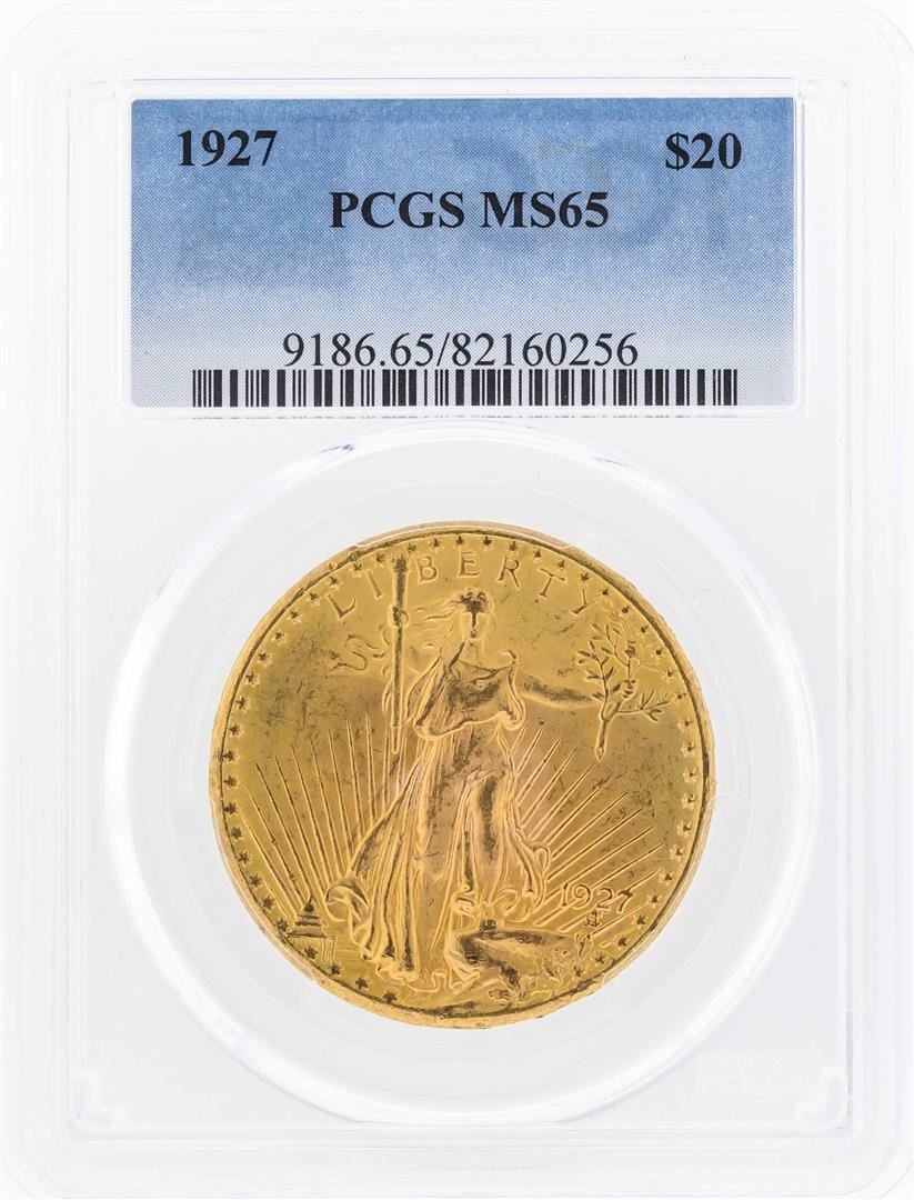 One 1927 $20 St. Gaudens Double Eagle Gold Coin PCGS MS65. PCGS Graded.