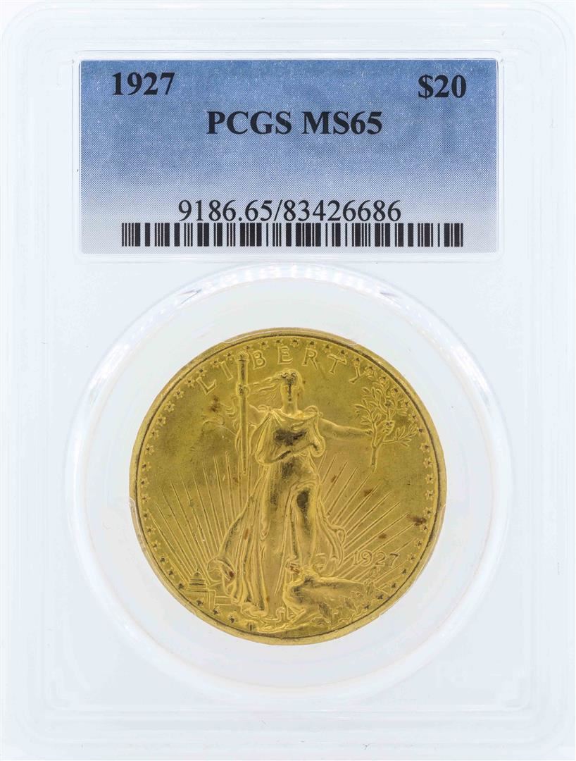 One 1927 $20 St. Gaudens Double Eagle Gold Coin PCGS MS65. PCGS Graded.