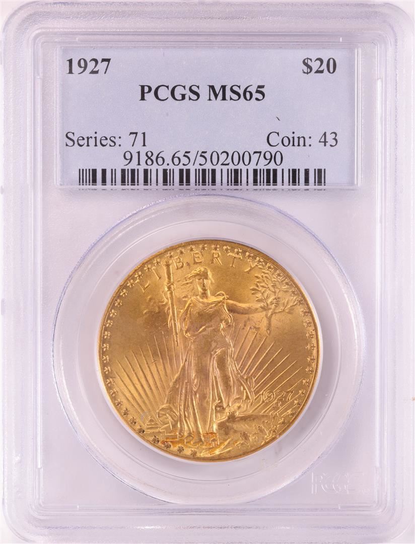 One 1927 $20 St. Gaudens Double Eagle Gold Coin PCGS MS65. PCGS Graded.