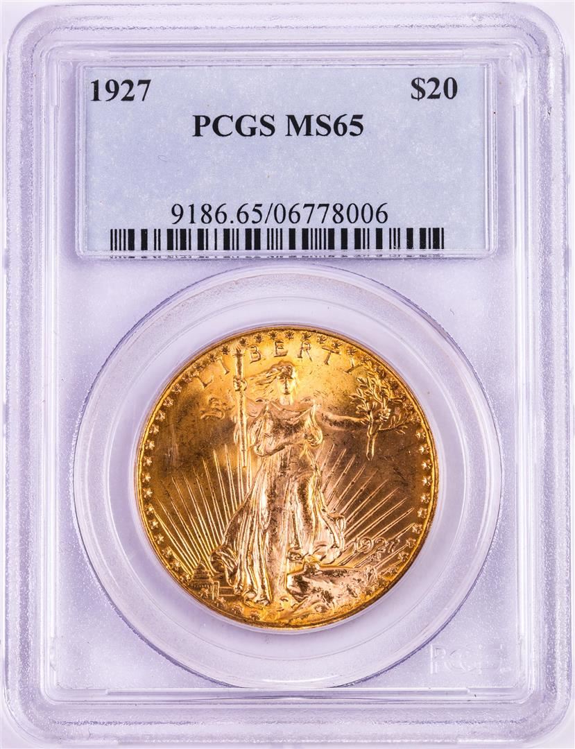 1927 $20 St. Gaudens Double Eagle Gold Coin PCGS MS65
