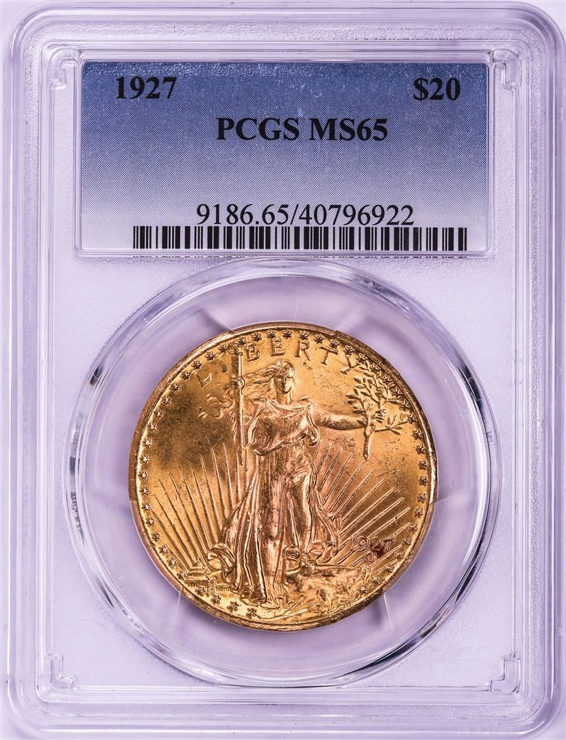 One 1927 $20 St. Gaudens Double Eagle Gold Coin PCGS MS65.