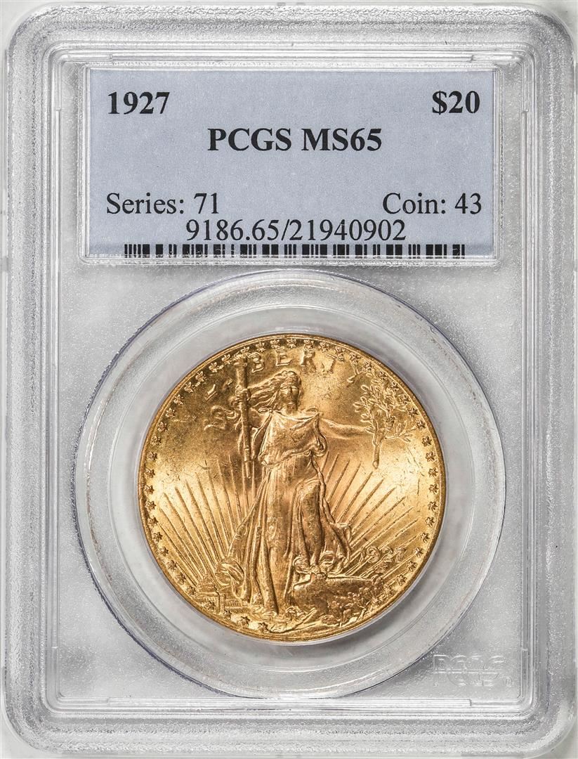 One 1927 $20 St. Gaudens Double Eagle Gold Coin PCGS MS65. PCGS Graded.