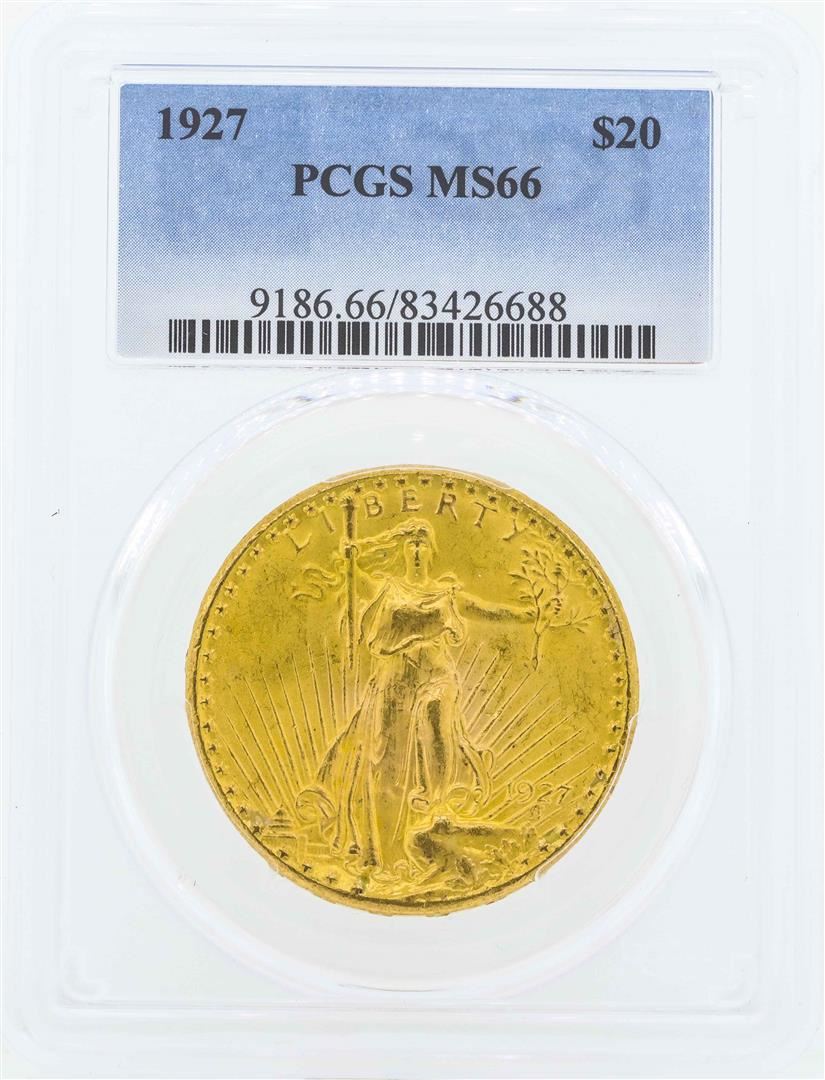 One 1927 $20 St. Gaudens Double Eagle Gold Coin PCGS MS66. PCGS Graded.