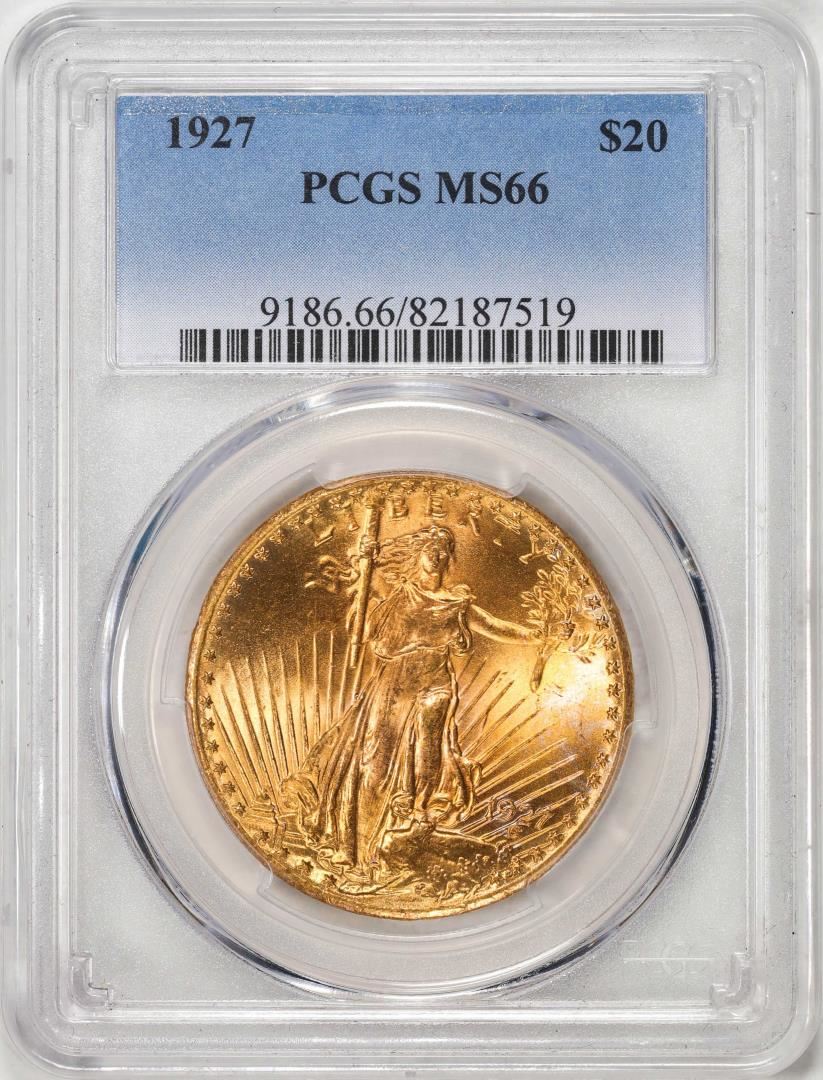 One 1927 $20 St. Gaudens Double Eagle Gold Coin PCGS MS66. PCGS Graded.