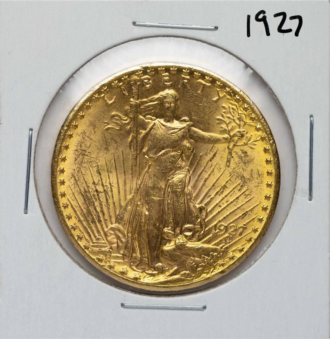 One 1927 $20 St. Gaudens Double Eagle Gold Coin.