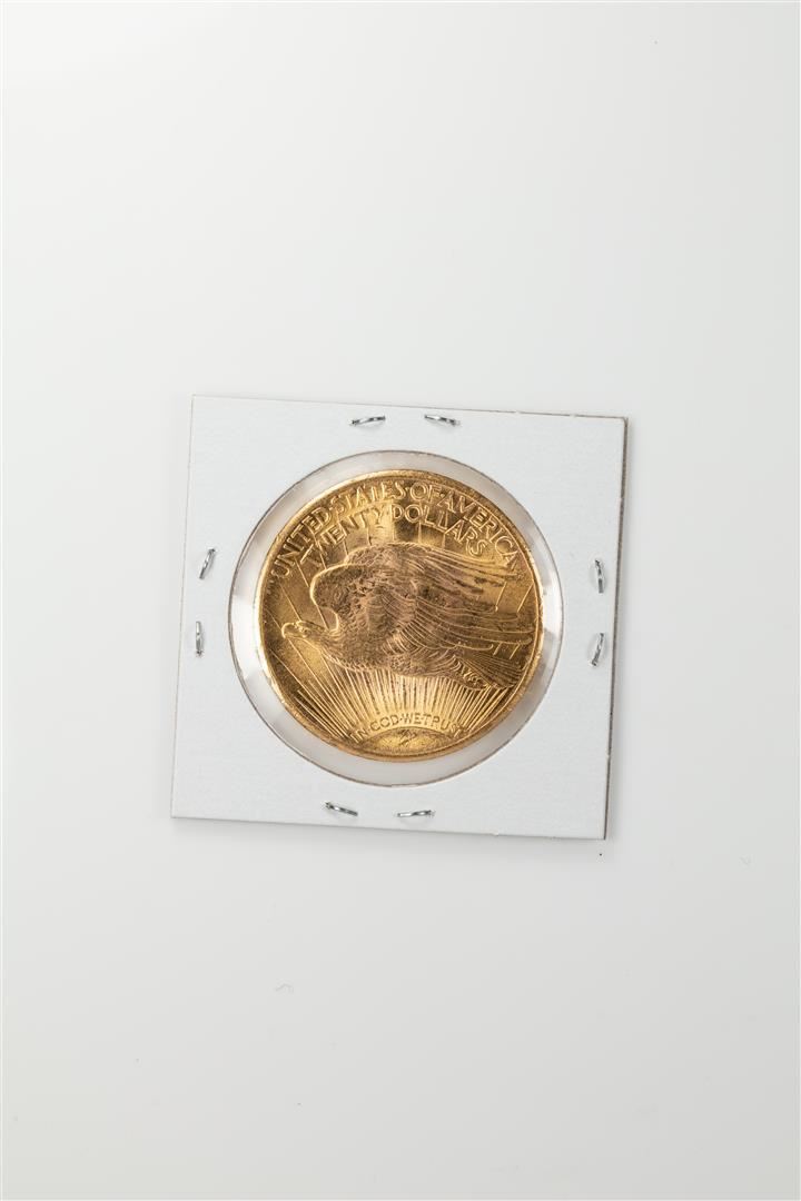 One 1927 $20 St. Gaudens Double Eagle Gold Coin.