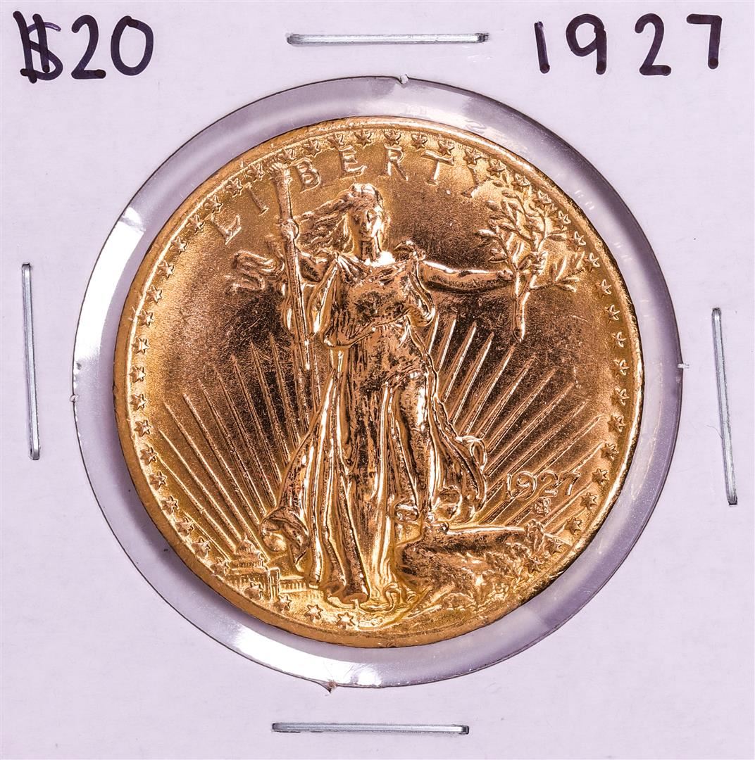One 1927 $20 St. Gaudens Double Eagle Gold Coin.