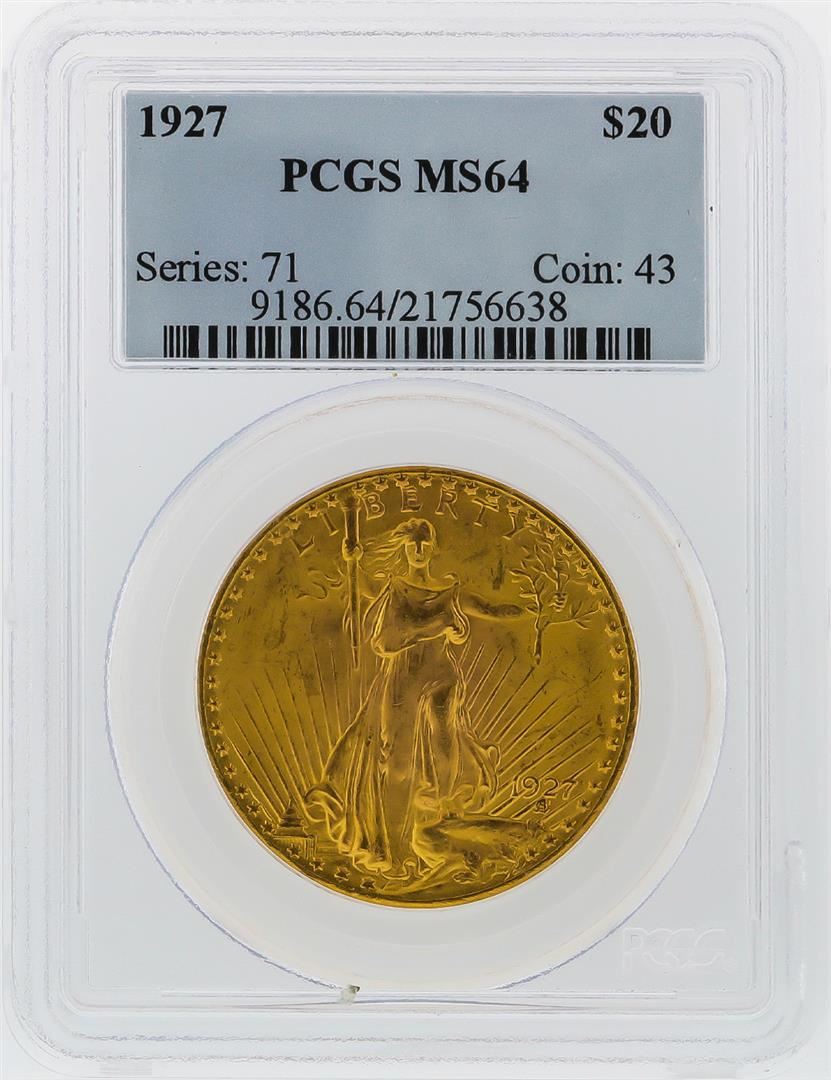 One 1927 $20 St. Gaudens Gold Double Eagle Coin PCGS MS64. PCGS Graded.