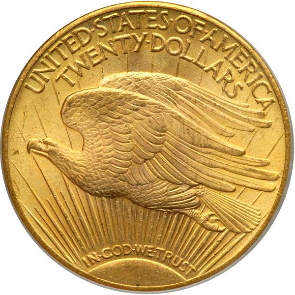 1927 $20 St. Gaudens. PCGS graded MS-66. Lovely rich golden mint color, the luster booming! The surfaces are radiant and each side has a nice veneer of golden patina that whips and tosses as it alternates between lighter and darker shades. Most coins of this date are extremely well struck; some are a little better than others; and collectors, true to their tradition, wish that all could be like this impressive MS66 Saint exhibiting fine detail to all the high points (PCGS # 9186) .