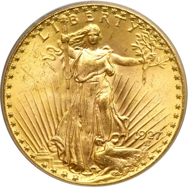 1927 $20 St. Gaudens. PCGS graded MS-64. Slight gold tone. a lustrous, well struck example of this popularly collected issue (PCGS # 9186) .